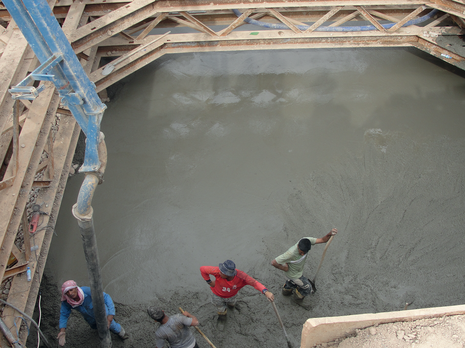 - صب خرسانة من الكونكريت و بسمك ٧٥ سم في قاعدة الحوض.